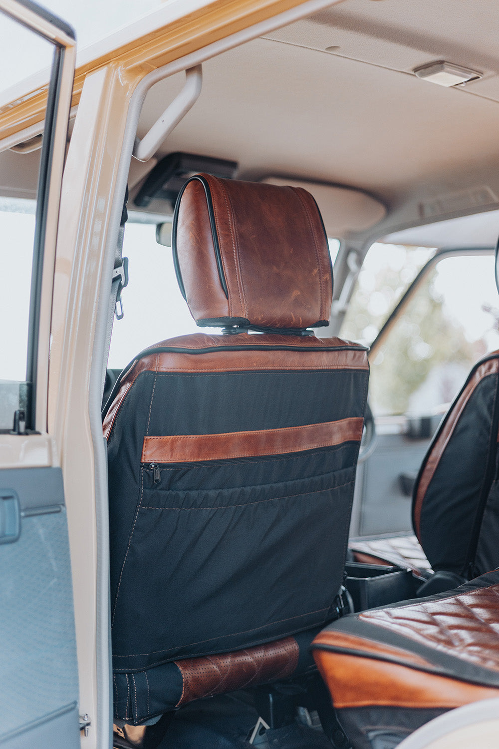 Fully airbag compatible and crafted with reduced use of polycotton canvas in favor of rich leather, the Legacy Pro transforms your vehicle interior into a space of timeless comfort and luxury — perfect for both daily driving and long-distance adventures.